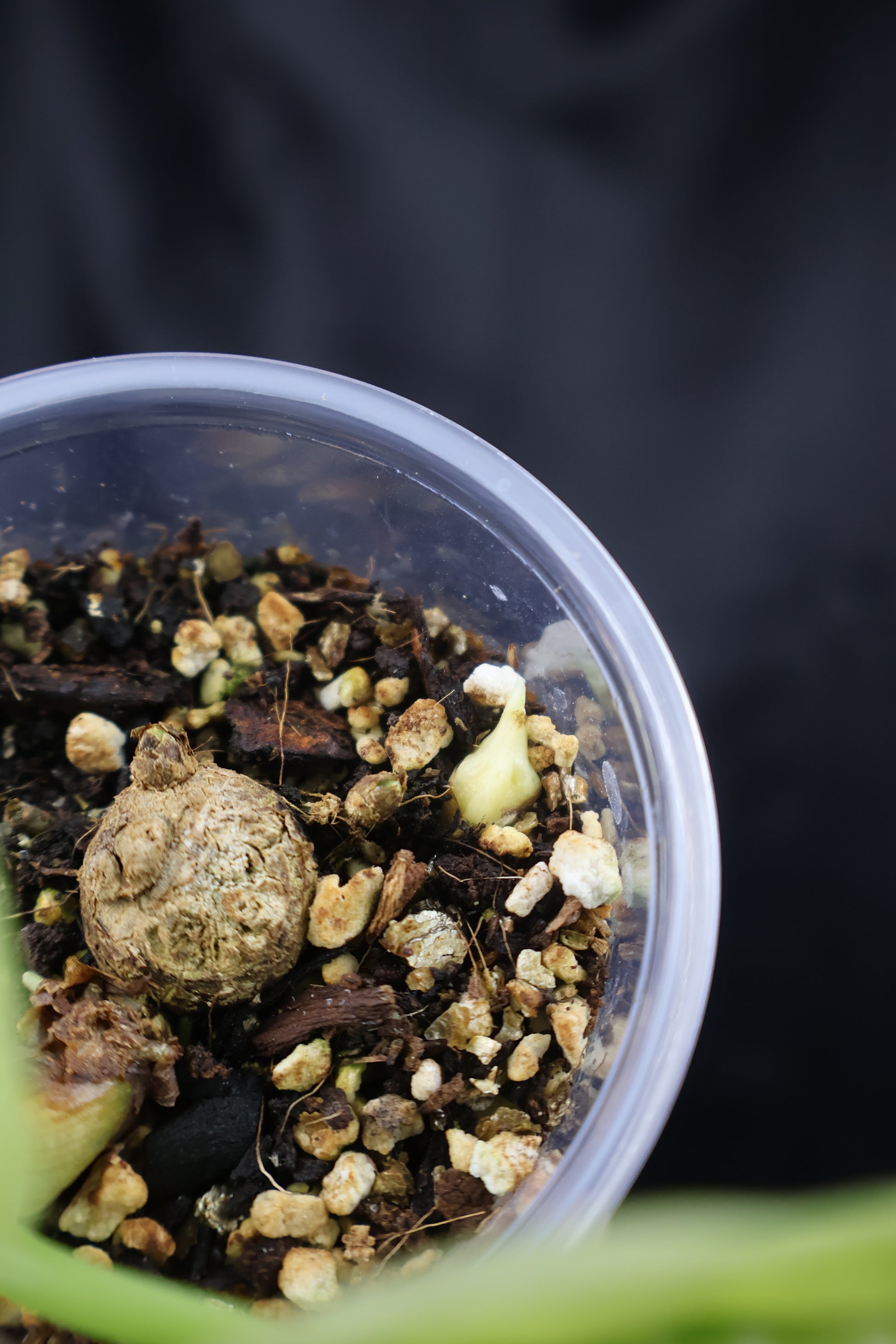- Additional corm developing in the pot