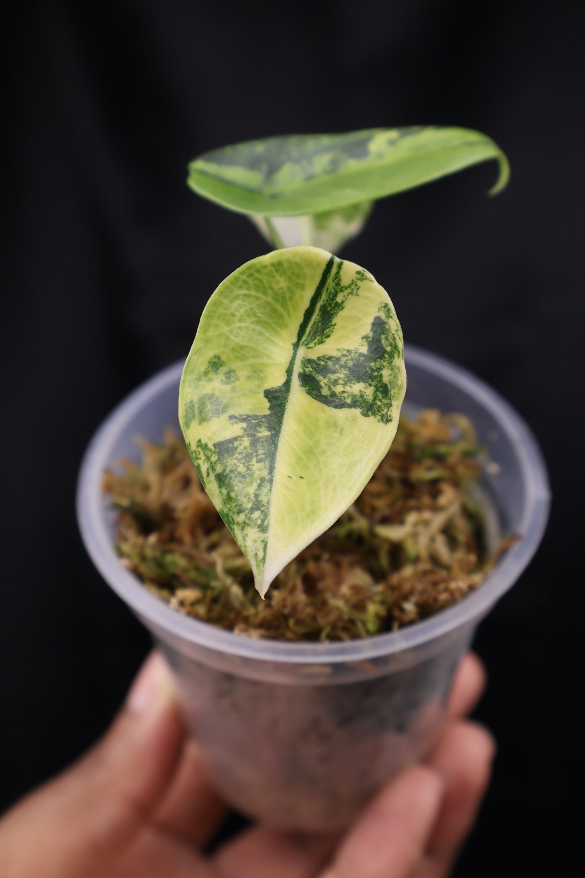 A rare and elegant Alocasia known for its narrow, elongated leaves and graceful growth habit once mature. The aurea variegation appears as warm yellow tones layered along the slender foliage, giving the plant a light, airy look that is highly sought after by collectors.
