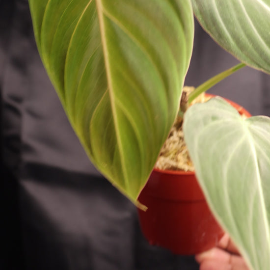 A hybrid of Philodendron melanochrysum × gloriosum, loved for its velvety, heart-shaped leaves and soft, striking veining. This plant is a grown from wet stick from my collection.